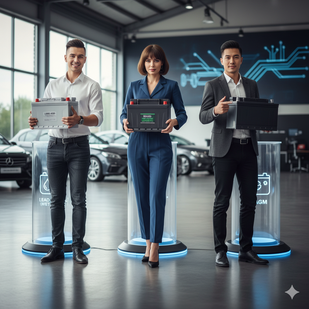 แบตเตอรี่ AGM (Absorbent Glass Mat): เหมาะสำหรับรถที่มีระบบ Start-Stop ที่ซับซ้อน หรือรถยนต์พรีเมียม/ยุโรปที่มีการใช้ไฟฟ้าสูง หรือมีระบบ Regenerative Braking (ชาร์จไฟขณะเบรก) เพราะสามารถจ่ายและรับกระแสไฟได้สูงและทนทานต่อการคายประจุลึกได้ดีกว่า
