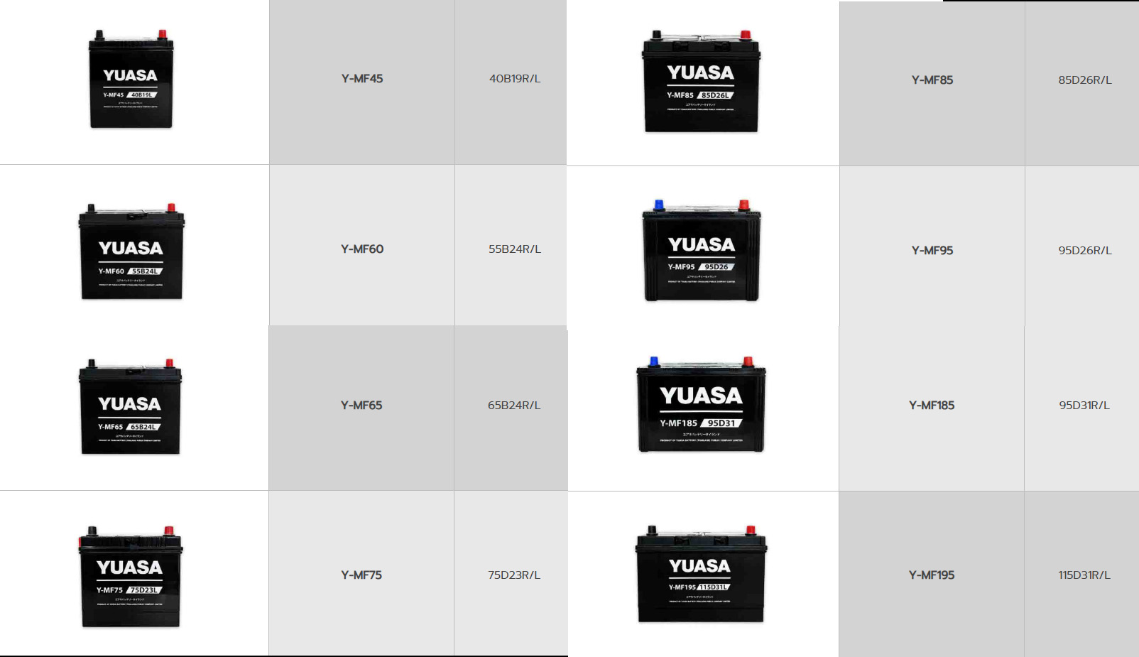 🚘 รุ่นแบตเตอรี่ YUASA MF ที่พร้อมตอบโจทย์รถคุณ: